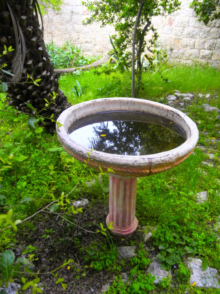 ברכת נוי ושתייה לציפורים מדופנת יריעה בוטנית ומזרקת מים מזרימה את מים במעגל סגור עם משאבה חשמלית , בריכה זאת הוקמה בשנים האחרונות וניטעו לידה עצים חדשים.