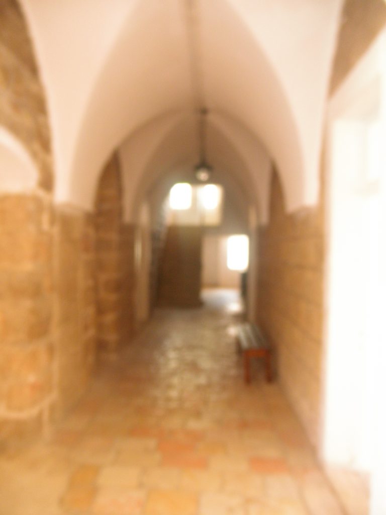 כיום לאחר שיפוץ שנעשה בעזרת מתנדבים נתגלתה תעלה שקועה בערך חצי מטר שאורכה כשני מטר המסתיימת בצורת משפך שקוע ,בעקבות התבוננות בצילום שהובא מהארכיב, בחלק התחתון של תעלת ההולכה ,נראה בחלק השקוע ,מעין תוף כמו צנטריפוגה שחובר ליצול, כדוגמת היצול במערכת טחינת חיטה , שבסופה קשור אליה חמור שסובב את התוף ודחס את המים לתוך הצינור ודחף בלחץ את המים למעלה בצינורות לששה דודי מים , שחלקם קיימים רובם נעלמו ,מן הדודים הוזרמו המים בצינורות המים לתוך המבנה. לצורת הוכחת הנושא מהארכיון של בית החולים בגרמניה , הובא צילום של החמור הקשור ליצול עם תעלת המשפך ומסביב מעגל הסיבוב שהלך בו החמור , המתאר את הפעולה והמתקן לדחיסת המים לדודים .
