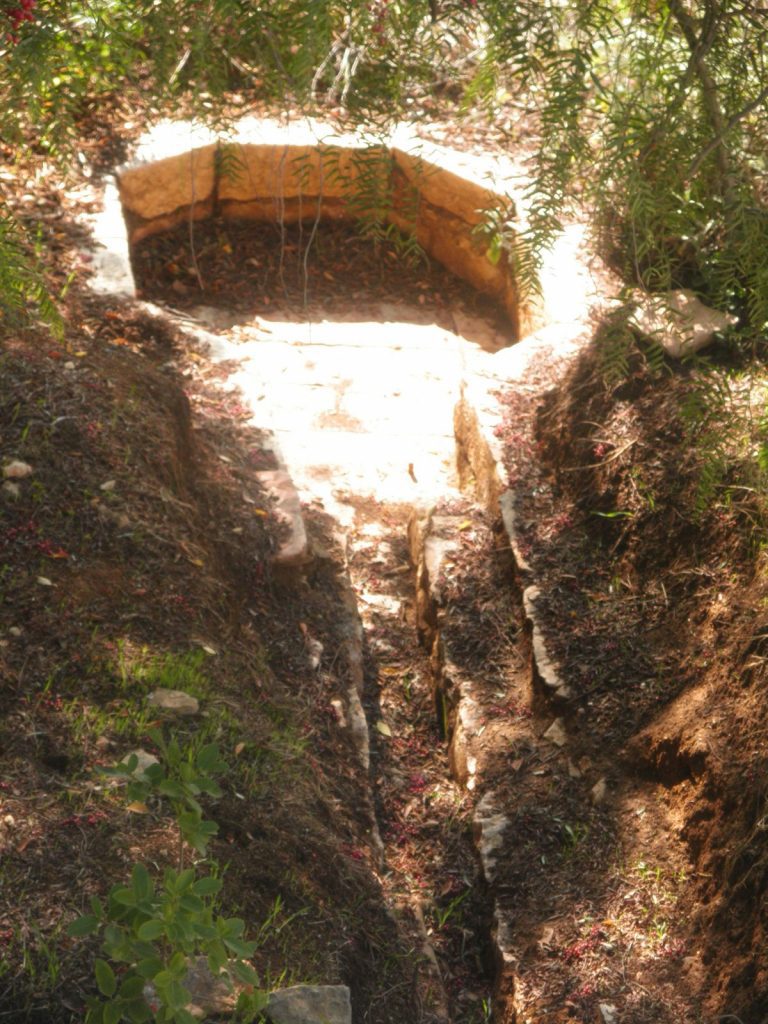בשלב מאוחר יותר בתחילת השביל היורד באזור שכיום מונחת של מזרקה מלאכותית שאינה פועלת ,הובאה תמונה שנייה המראה מתקן משאבה ידני מן הדודים לתוך צינורות המים משאבה ידנית כמו משאבות שהותקנו בבתי הטמפלרים במושבה עם גלגל וידית כמו הגה אוניה שצמודה אליו ידית ובסיבוב משכו את המים לצינורות.