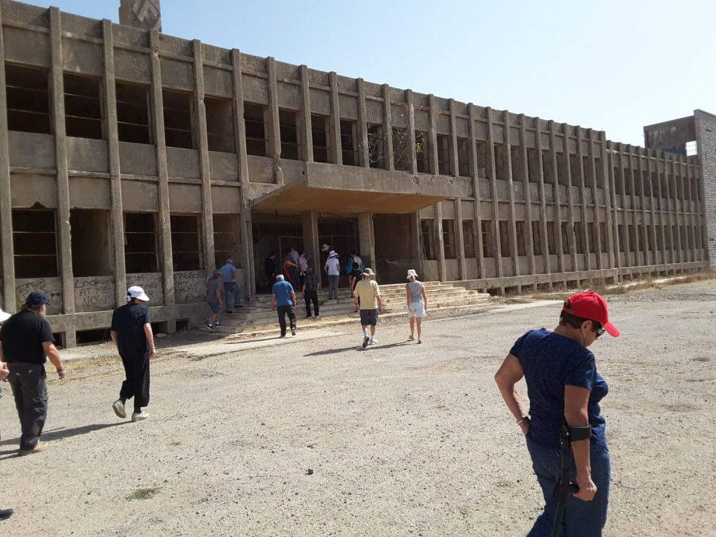 חוזרים אל הכביש המוליך בין עין זיוון לקונטרה ,וממשיכים ליד מבנים סורים נטושים, כאשר הכביש פונה שמאלה בצדו הימני ,יוצא ממנו שביל עפר המוליך לחורשת אקליפטוסים המסתיר מבנה גדול בן שתי קומות ולידו בית הספר לקצינים, מבנה ששימש כמפקדת המודיעין הסורי ברמה .